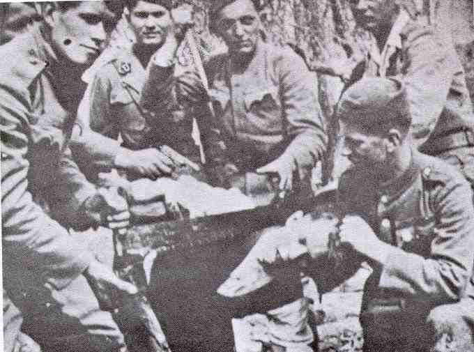 Ladislav Grinbaum, a Jew from Osijek, was one of the few men to survive a camp execution. "One day, 10 of us internees and 16 Ustasha guards went to Jablanac to put up an electric cable. While we were working, we noticed that the Ustasha had brought a lot of women and children and we could see what was happening. The Ustasha guards who had brought them ordered them to sit on the ground. A little later, the killers came. With knives, iron bars and mallets they attacked that helpless crowd... I do not know how many there might have been. Many women held their children tightly in their arms and were killed like that. From the post I was working on I saw with my own eyes the slaughter of my wife and children. I would have fallen off the post with horror if I had not been tied to it. I could not talk and I had difficulty talking later". Another survivor was Vladimir Cvija from Zagreb. "The most terrible scene I witnessed was when Ustasha took a group of internees from Camp IIIc. They looked more like skeletons in a state of almost total collapse, with swollen legs, complete physical and psychological wrecks after life behind barbed wire, under the open sky, in mud, with no food or water. They had been told they were going to pick plums. They passed before us with smiles on their faces, in which pity for us could be seen, because there would be plums where they were going, and that meant food. Evening came and the gentle southern breeze brought desperate screams. The killers had started 'picking plums'". In 1942 the Wehrmacht mounted a campaign around the Kozara mountain - across terrain which is the scene of massacre and "ethnic cleansing" today - to smash Tito's guerilla army. More than 70,000 troops from the Wehrmacht's Army Group E rounded up every man, woman and child and transported them to Jasenovac and its satellite camps. Most of these civilians were SERBS. Thousands of young men were hanged from gallows erected at the roadside between Banja Luka and Prijedor. Photographs taken by the Germans and Ustasha - for the latter administered most of the roadside executions - show corpses hanging like trushes from wooden gallows. Thousands of men, women and children were herded into the brickyards at Jasenovac and beaten to death with clubs and axes. Croatian Ustasha girls mercilessly beat many of the women. A photograph exists of two pretty women, Nada Tanic-Luburic and Maja Slomic-Buzdon, in Ustasha uniforms with the Croatian crest on their hats, posing for a photographer during their reign of terror at Stara Gradiska camp. The partisans, mostly Serbs... fought back. Politicians and soldiers contemplating operations against Serbs might do well to read this account by Kurt Neher, a Wehrmacht officer, of the 1942 guerilla attacks on the German army. "Then came the most haunting part of all that made everyone's blood curdle. A woman started screaming hard and long and hundreds took up her call. Then women and children threw themselves with animal-like intensity against our lines. It seemed to us as if we were present at the instant of forming of a primeval human horde with men running at us in human waves, intent on their own destruction and mindless of fear". In the Kozara campaign, the toll of those killed in action, executed or deported reached 60,000. Most tragic of all the tales of horror must be that of the children of Kozara. They were separated from their parents and marched to railheads by Ustasha: 23,000 children in all, 11,000 of whom were to be murdered. In July 1942, hundreds of children died in railway cattle wagons between Stara Gradiska and Zagreb. The rail journey took 24 hours and older survivors recalled how the Croatian footplate crews wept for the infants dying of typhoid in the wagons.