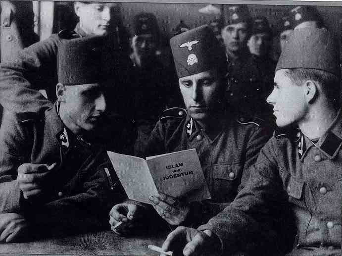 has German title: "Islam und Judentum". The volunteers have swastika on