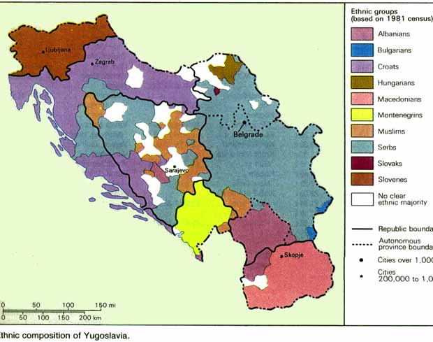NOTE: The country of Yugoslavia was formed in 1918. Its first name was the "Kingdom of Serbs, Croats and Slovenes". Those three nations were the constituent nations of Yugoslavia. Thus, they have the right to (using peaceful means) negotiate leaving the union. Albanians of Kosovo are NOT constituent nation of Yugoslavia. They are minority in the true sense of the term. To make a precedent and give Albanians of Kosovo "right" to secede would open a whole new Pandora's box in the international relationships. ![]() [ Ethnic maps of Yugoslavia ] [ Communist Yugoslavia ]
